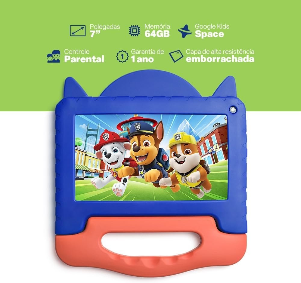 Tablet Infantil Patrulha Canina Chase 4GB RAM + 64GB Tela 7 pol Android 13 Quad Core Multi – NB421